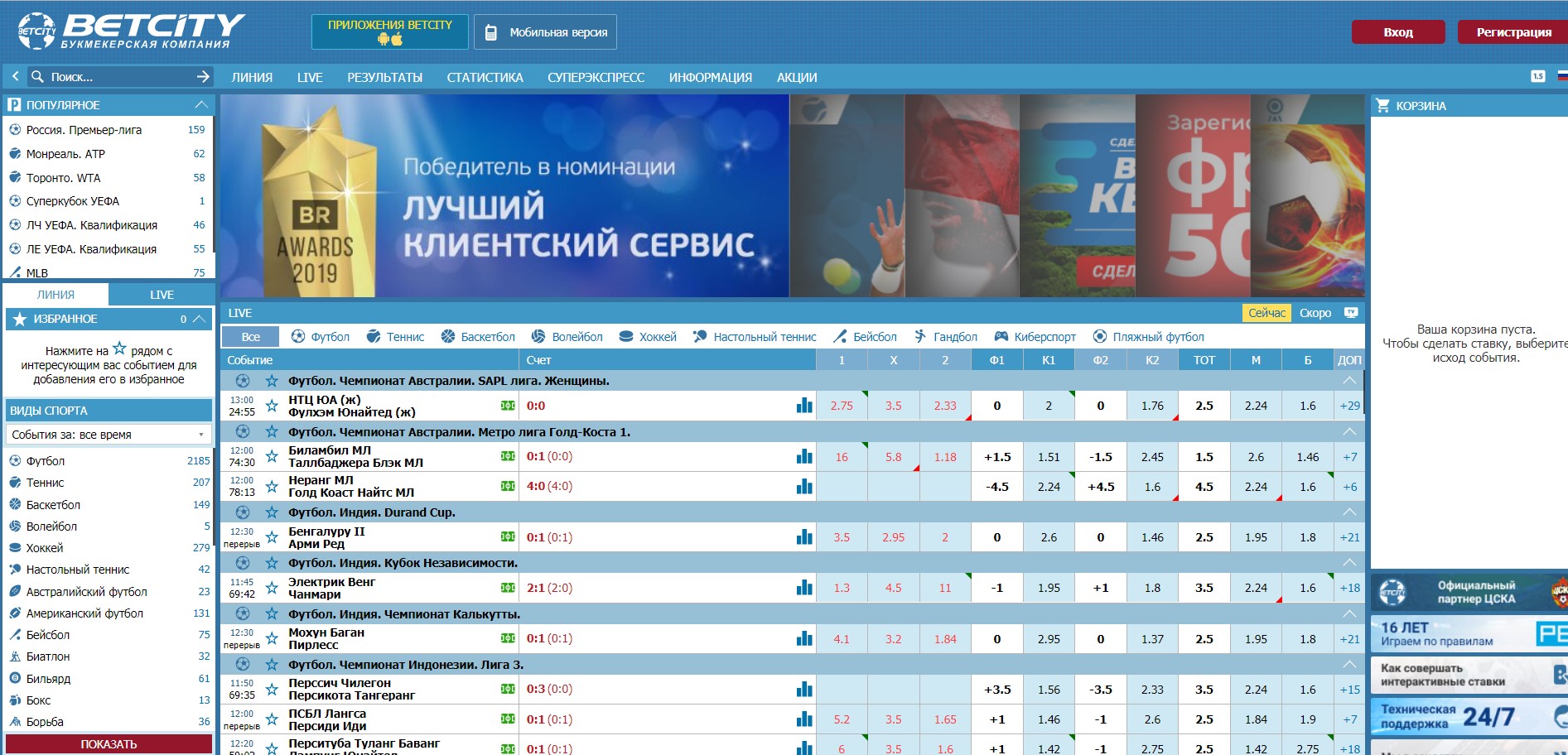 Букмекерская контора Бетсити на данный момент работает в России легально. Зайти на сайт можно через зеркало, или воспользовавшись другими методами обхода блокировки. Плюсов у БК больше чем минусов, что привлекает игроков. Контора покажется вполне нормальной и для многих клиентов из европейских стран.